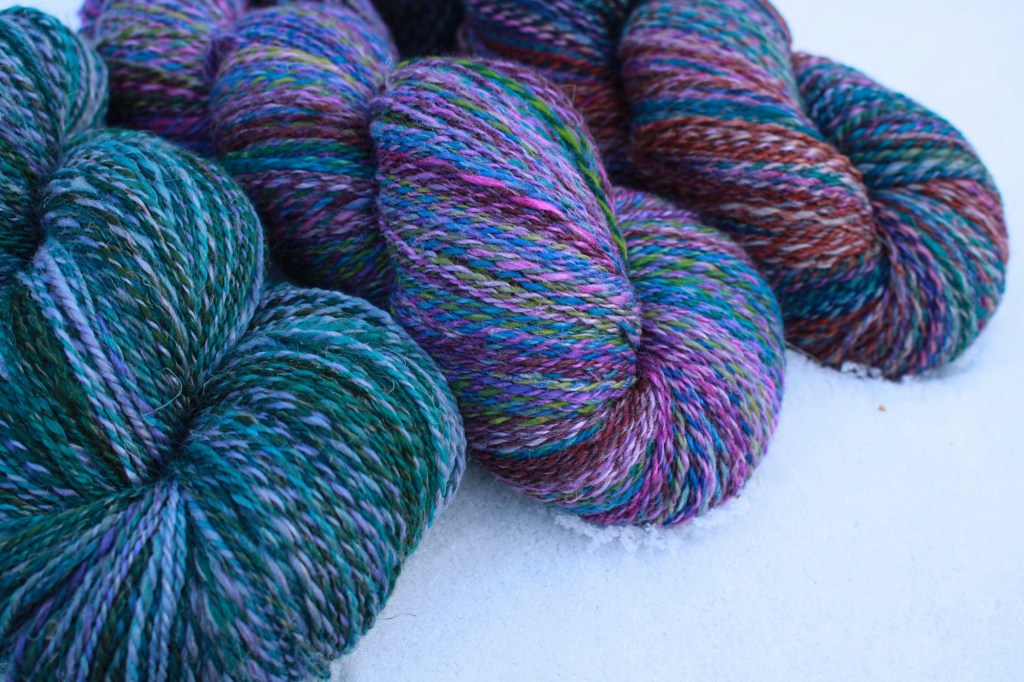 The yarns that I would suggest are Fleece and Harmony Wildwinds 2 Ply or Selkirk worsted but please feel free to sub in what works for you.